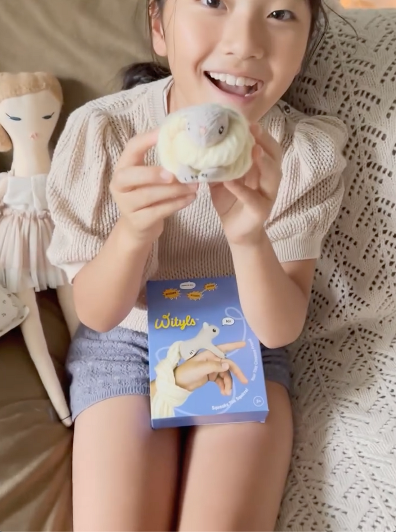 A Wityls is a tiny, super-soft creature friend kids can wear on their wrist, finger, or even their backpack. Think of it as part toy, part accessory, part emotional support sidekick.